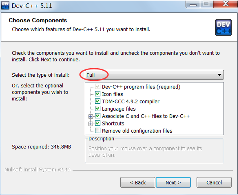 4) 选择要安装的组件:选择“Full”,全部安装。