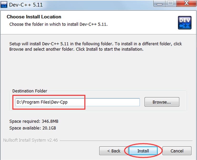 5) 选择安装路径:可以将 Dev C++ 安装在任意位置,但是路径中最好不要包含中文。