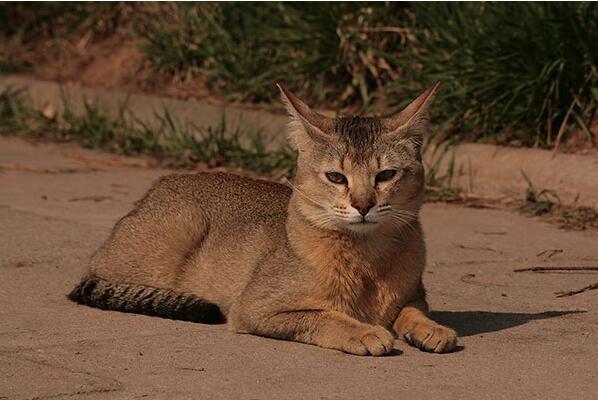 此外,非洲狮子猫的耳朵较为尖长且直立,显得十分警觉。它们的尾巴较长且粗壮,尾巴的末端常带有黑色环状条纹。整体上,非洲狮子猫的外貌散发出一种野性的优雅,与真正的狮子有几分相似,但又不失猫咪的温顺与亲切。